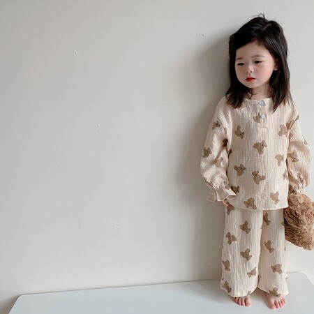 1*4收藏“满印灰熊长袖阔腿长裤家居服套装”