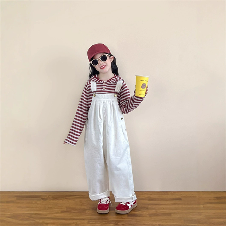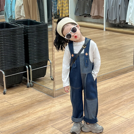 1*1收藏“拼色牛仔背带裤白色T恤套”