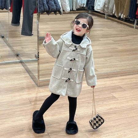 1*8收藏“牛角扣双面尼中长款连帽外套”