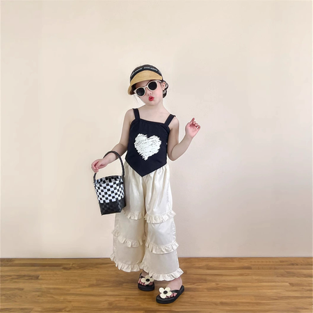 1*7收藏“炸街款复古植绒波点网纱背心儿童牛仔阔腿裤”