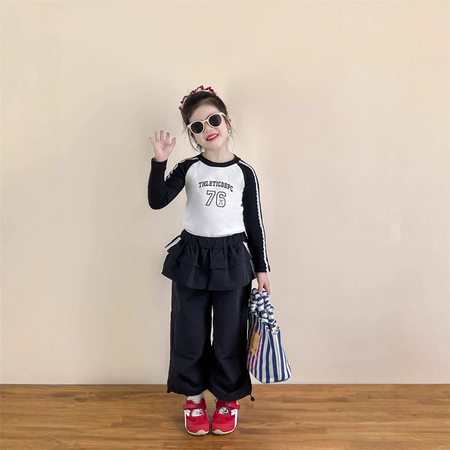 1*7收藏“字母蕾丝插肩长袖T恤花边荷叶边屁帘裙裤”