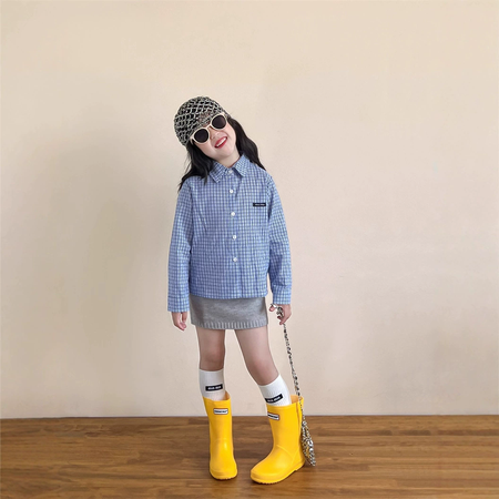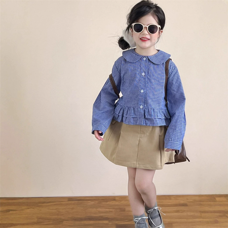1*7收藏“娃娃领设计感细蓝格长袖衬衣”