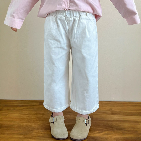 1*7收藏“白色斜纹棉布水洗翻边直筒长裤”