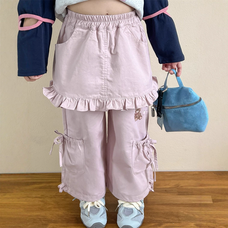 1*7收藏“粉色小熊木耳边假两件时髦休闲裙裤工装裤潮”