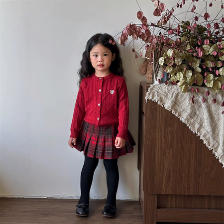 1*5收藏“红色刺绣麻花毛衣开衫红格毛呢裙套裙”