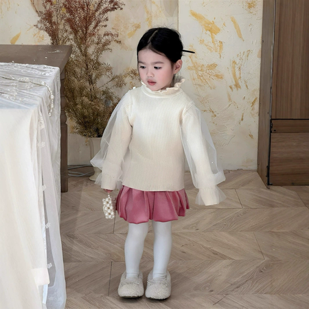 1*1收藏“中式温柔拼亮纱泡泡袖木耳边高领毛线”