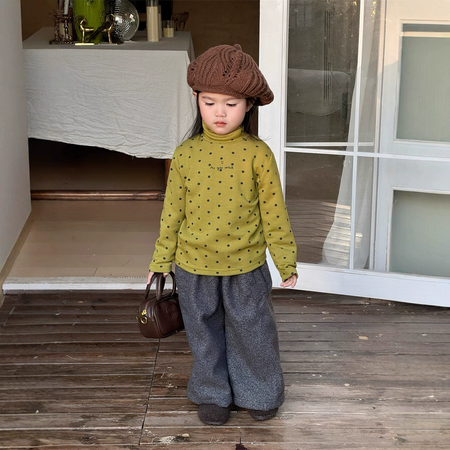 1*4收藏“绿底波点高领打底衫柔软毛呢阔腿裤套”