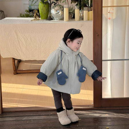 1*5收藏“宽松连帽加厚夹棉绗缝碎花内里棉服”