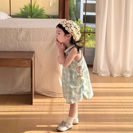 1*1收藏“蓝格无袖腰间镂空连衣裙”