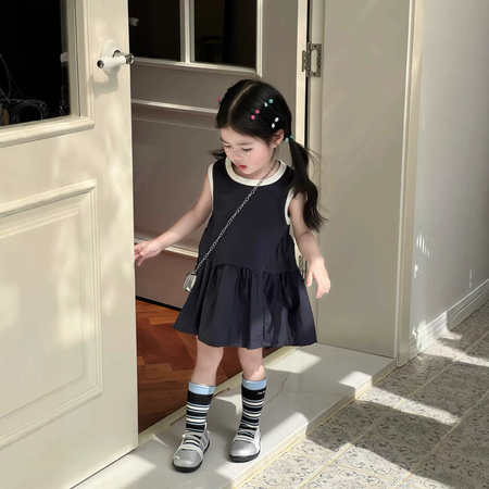 1*7收藏“荷叶边无袖圆领藏青背心裙连衣裙公主裙”