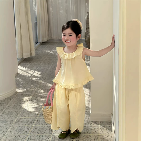 1*2下载“荷叶边领黄色无袖灯笼个性气球8分裤脚套装”图片包