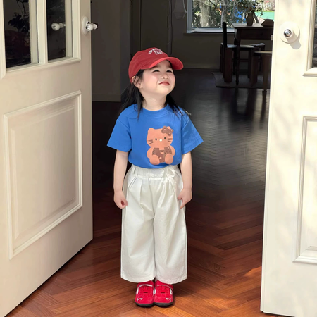 1*5下载“蓝色卡通短袖T恤刺绣猫咪阔腿裤套”图片包