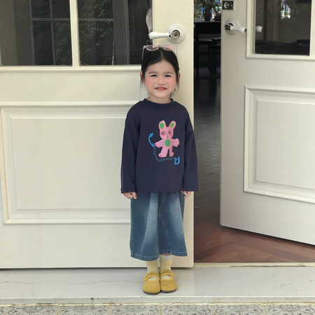 1*2收藏“蓝色卡通长袖T恤贴标牛仔半身裙两件套”