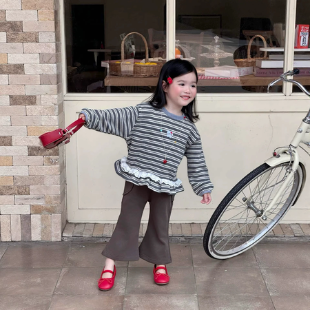 1*6收藏“可爱条纹贴标花边摆卫衣灰色爱心喇叭裤套”