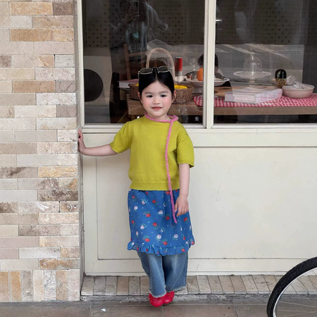 1*1下载“芥末绿泡泡短袖毛线蓝底碎花屁帘毛边牛仔裤”图片包