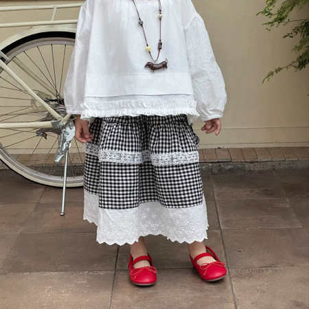 忘*8将商品“镂空花边格子拼接休闲半裙中长款”发布到淘宝