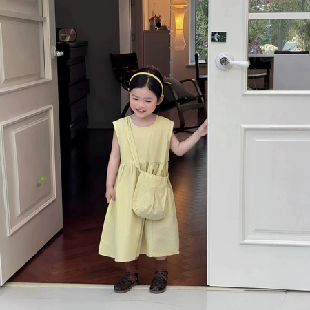 1*3下载“配包包黄色轻薄收腰收褶无袖宽松大摆背心裙”图片包